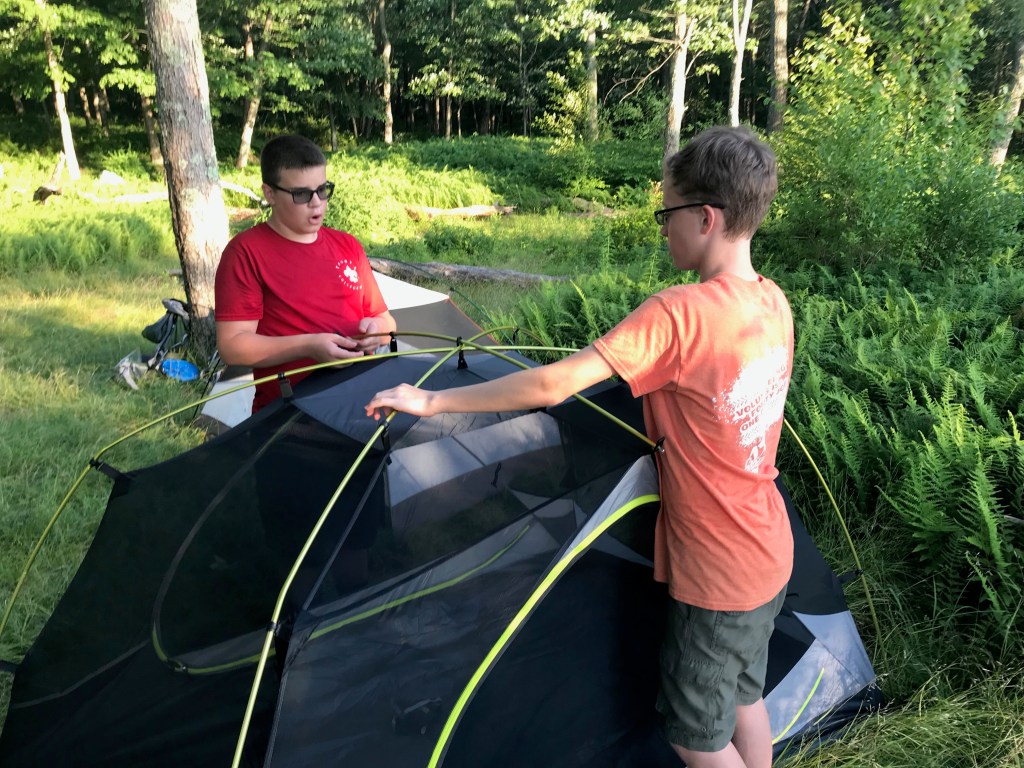 This was a shakedown hike for several of our scouts, who got to try out one of the new backpacking tents donated by Cabela’s of Hamburg, Pa. and make changes to their packs and gear based on lessons learned during our Pine Barrens winter hike in February 2019.