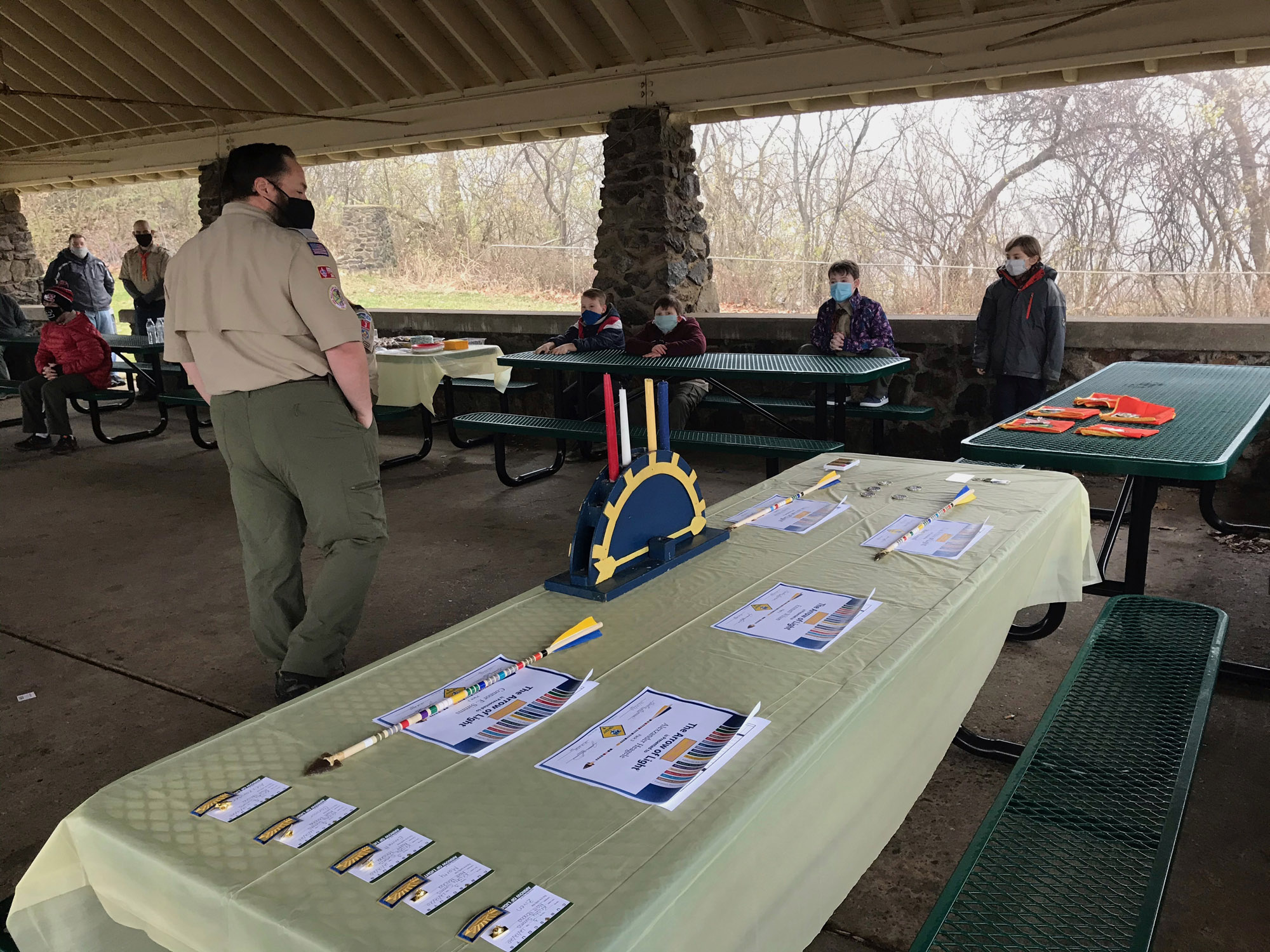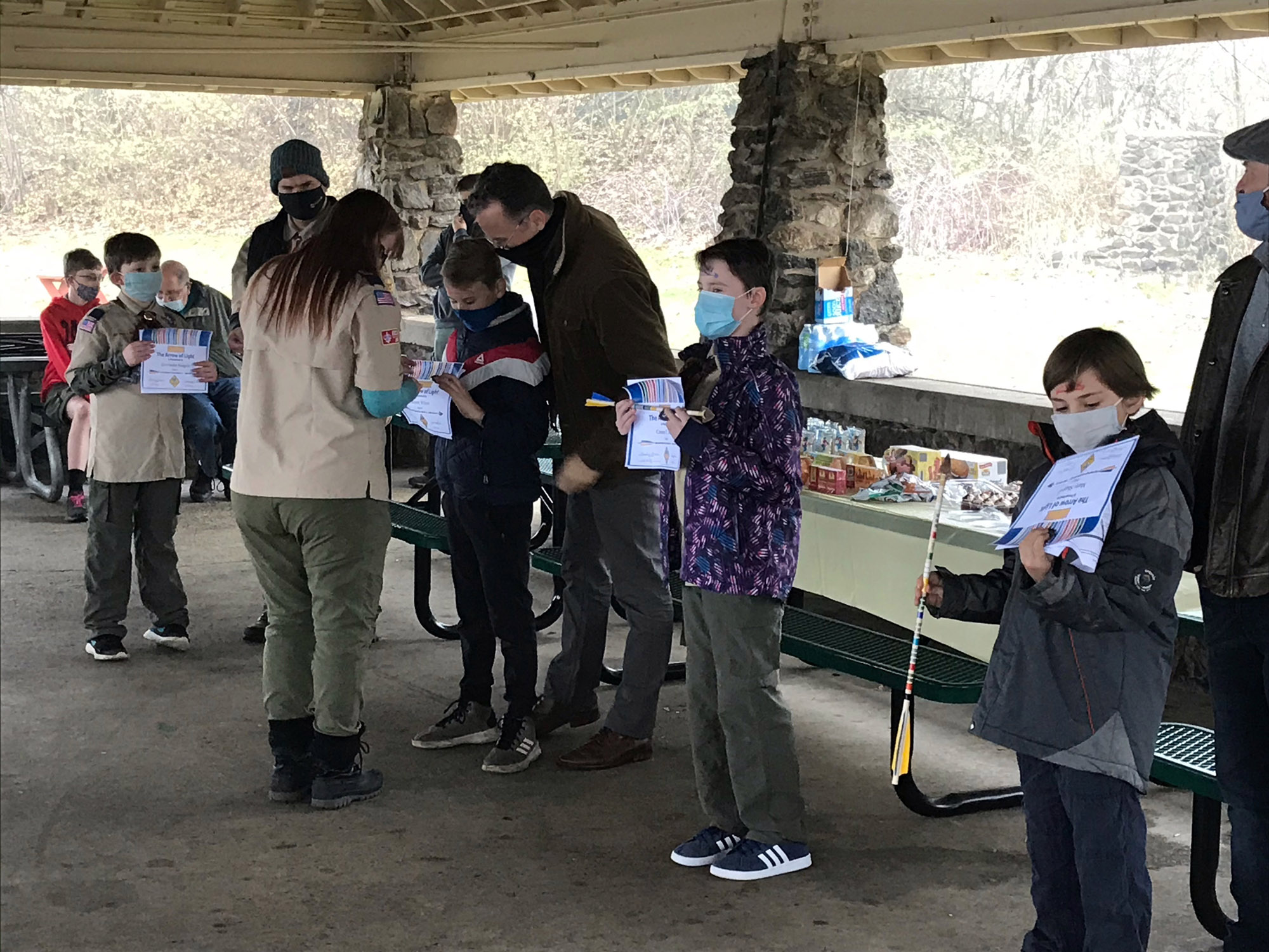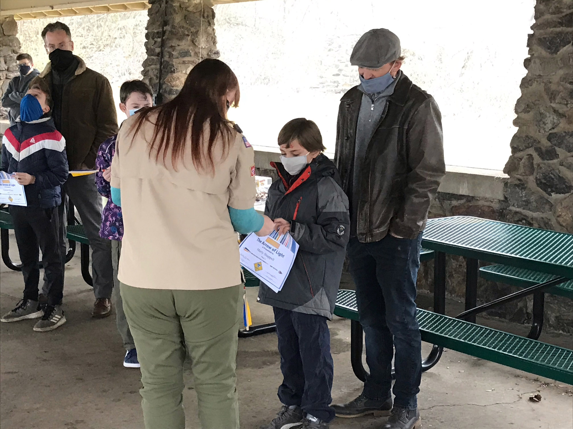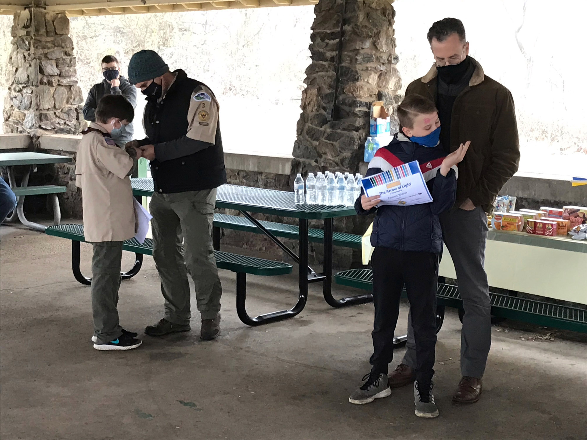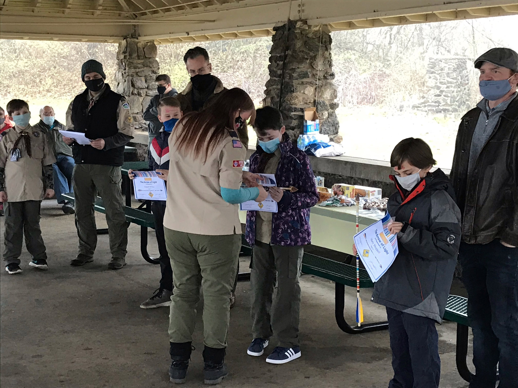 Pack 3 held their outdoor and socially distant Arrow of Light Ceremony at Hackett Park in Easton, Pa. on Saturday, Dec. 12, 2020. As part of the ceremony, five Arrow of Light scouts crossed over into Troop 3.