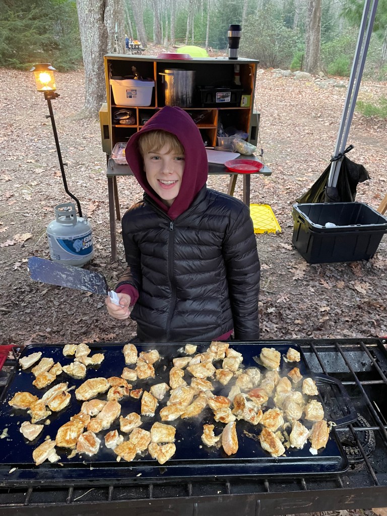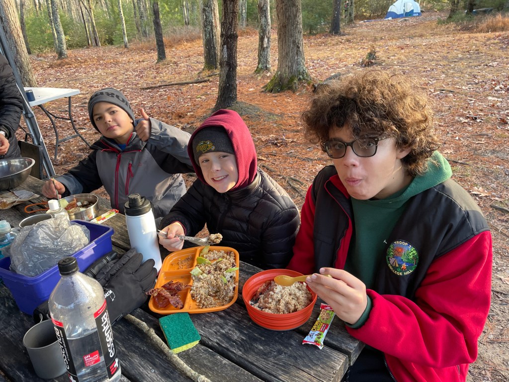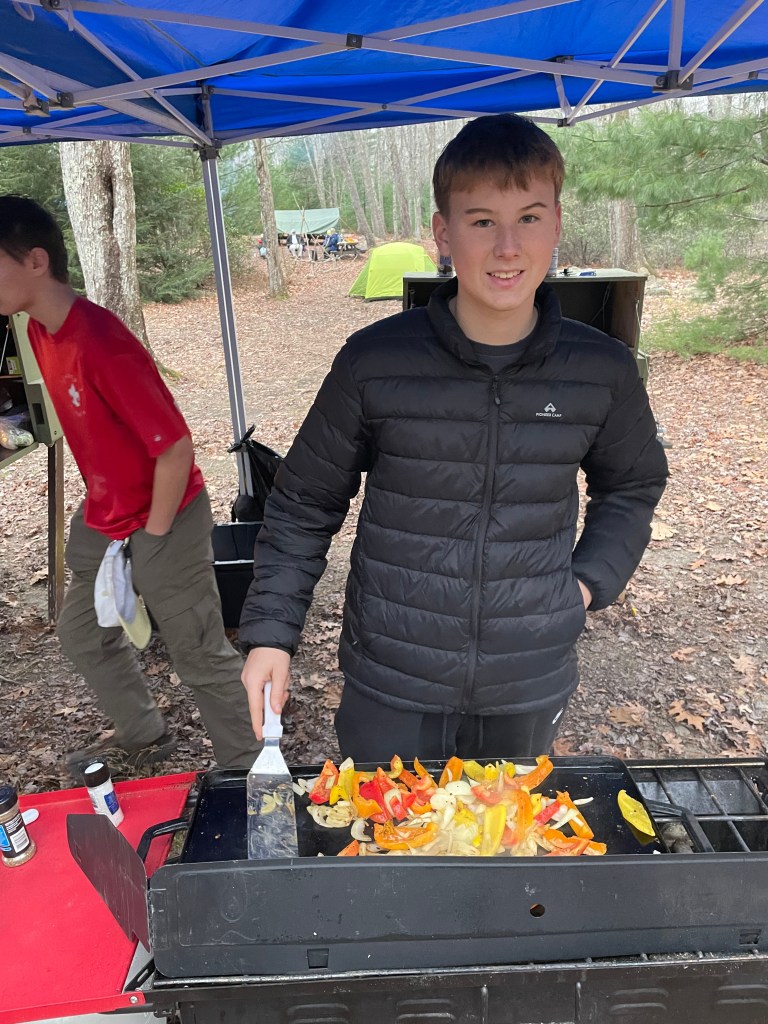 Scouts, finally done with marching band and fall sports, were able to get back out there. An AOL scout from Pack 3 joined the Troop. We enjoyed cooking, the boulder field, tent camping, camp fires, and the rain.