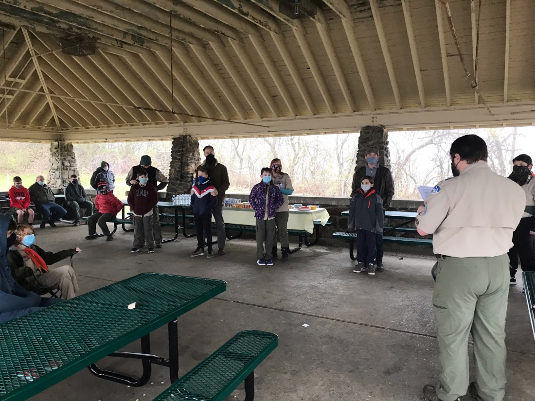 Pack 3 held their outdoor and socially distant Arrow of Light Ceremony at Hackett Park in Easton, Pa. on Saturday, Dec. 12, 2020. As part of the ceremony, five Arrow of Light scouts crossed over into Troop 3.
